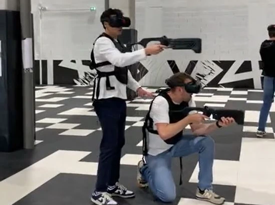 👉 C’est notamment le cas des expériences en réalité virtuelle en déplacement libre, où les joueurs évoluent physiquement dans un espace, se voient, se parlent et interagissent réellement.